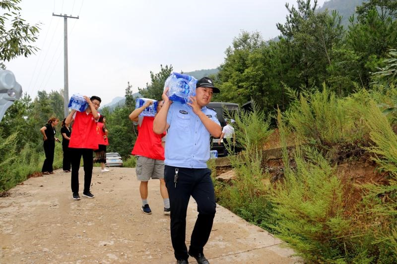 近期,由于受长期干旱少雨天气影响,我县多地出现不同程度旱情。在得知万峪河乡偏远山区部分群众饮用水困难的情况后,县公安局联合房县大爱义工及当地新时代文明实践志愿者,为受灾群众送去爱心商家捐赠的120箱矿泉水,并为万峪河乡派出所捐赠净水器一台。(许世鹏 摄)