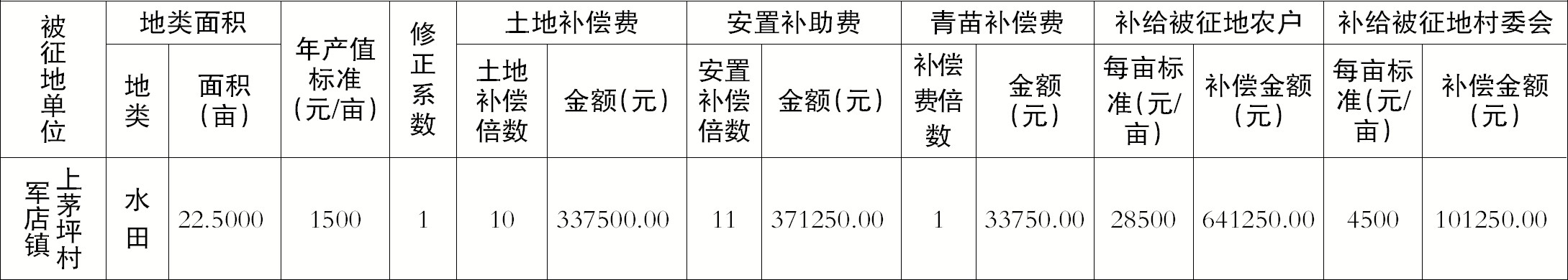 1、征地补偿标准:根据房县征地统一年产值标准,军店镇属Ⅲ类地区,年产值标准为1500元/亩。具体补偿标准和数额见下表。