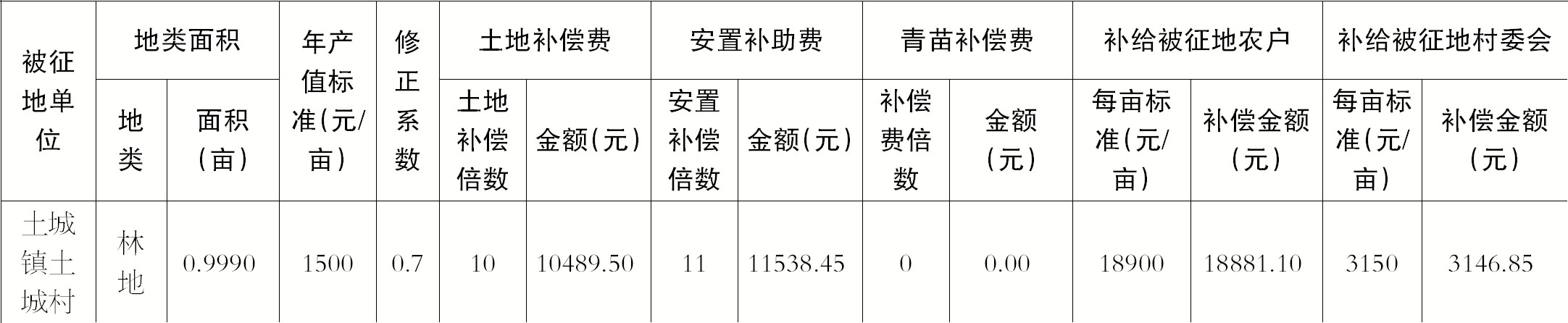 1、征地补偿标准:根据房县征地统一年产值标准,土城镇属Ⅲ类地区,年产值标准为1500元/亩。具体补偿标准和数额见下表。