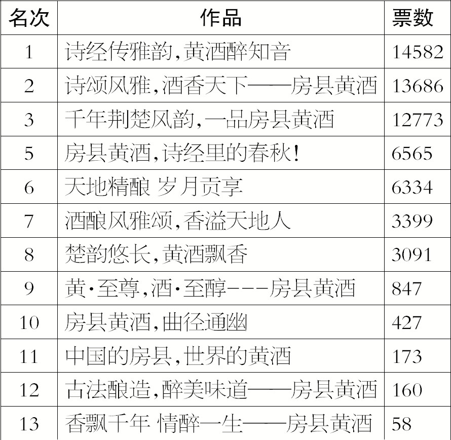 本报讯 (通讯员孙婷婷) 9月15日,由县黄酒产业发展中心、县文联主办的“我最喜爱的房县黄酒广告语”网络投票活动圆满落幕。