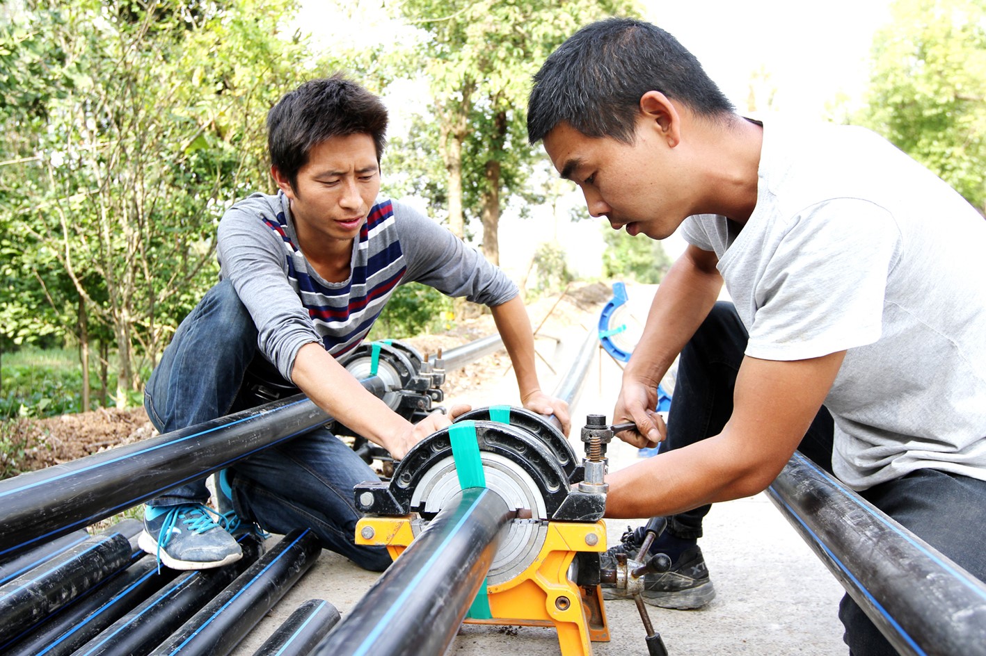 10月13日,水利施工人员在回龙乡黑獐沟村焊接饮水管道。近四年来,我县完成投资2.89亿元,兴建农村集中饮水工程308座,分散饮水工程870处,铺设管网4908千米,受益易地搬迁小区682个,供水规模5.71万吨/日,解决了40.5万农民吃水难题。