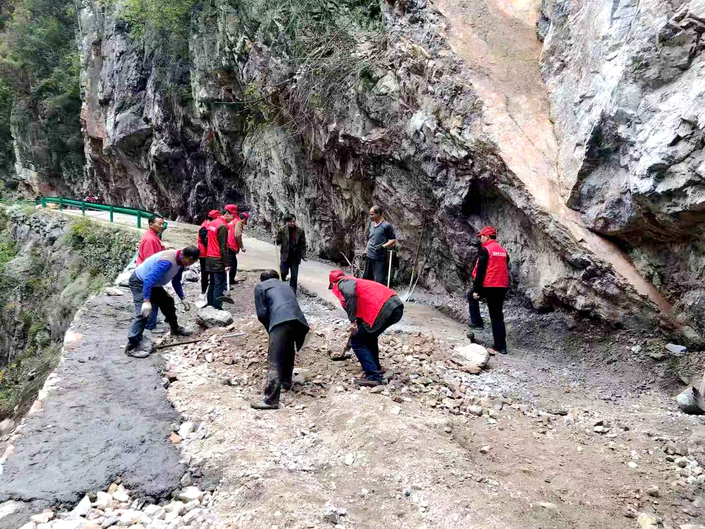 由于受连日阴雨天影响,尹吉甫镇珠藏洞村四组石灰沟通组公路发生山体垮塌,道路损毁严重,行人车辆无法通行。因抢修队员不足,尹吉甫镇财政所扶贫工作队及新时代文明实践志愿者为抢修队员送饭送水,并积极加入抢修工作。经过六天五夜的奋战,垮塌公路完全修复,恢复通行。 (徐扬 摄)