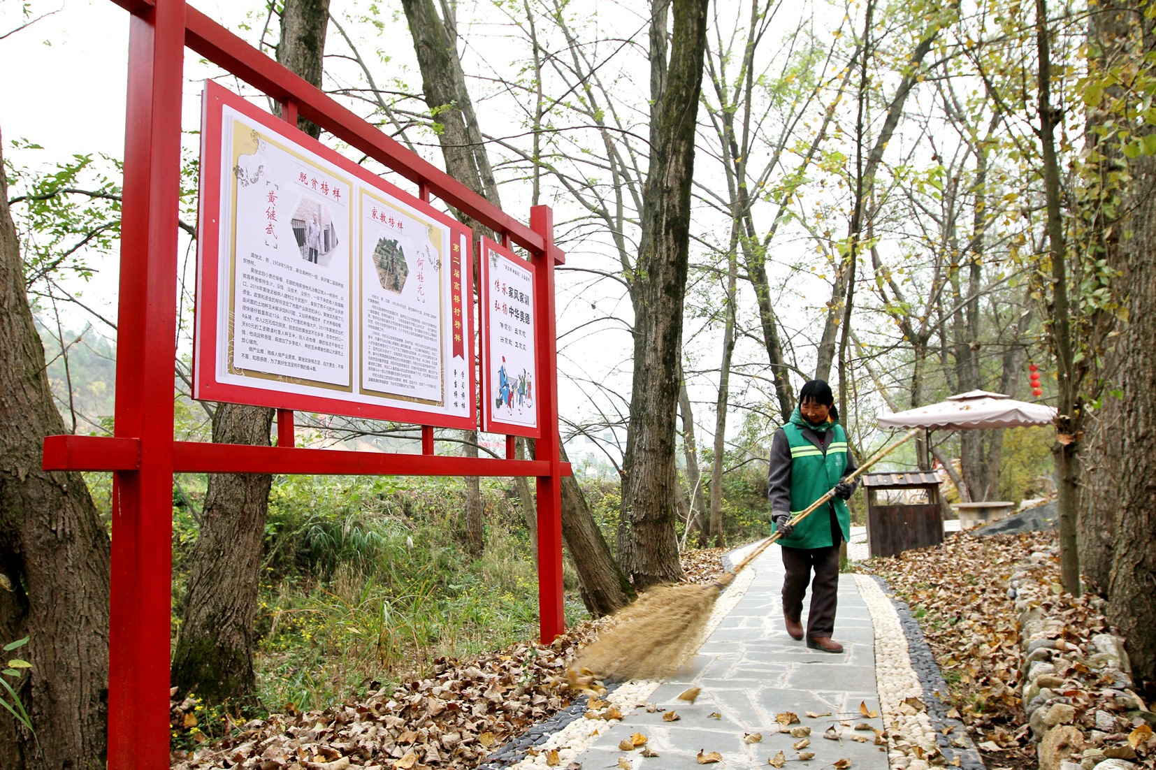 近日,化龙堰镇高桥村保洁员在清扫小流域生态景区的步行道。我县综合治理小流域水土流失陡坡地、沟溪,发展固水保土的水保林,整治村庄环境,为村庄“美容”。目前,全县累计治理水土流失面积1938平方公里,小流域区森林覆盖率已达77.8%,水环境和空气环境质量跨入全省第一方阵。