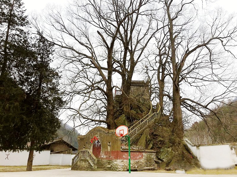 站在距离桥上小学约两公里的地方,就能看到校园上空密密麻麻的古树枝干。尽管树叶已经落尽,但黝黑粗壮的枝干仍然雄伟苍劲、巍峨挺拔,让人心生向往。