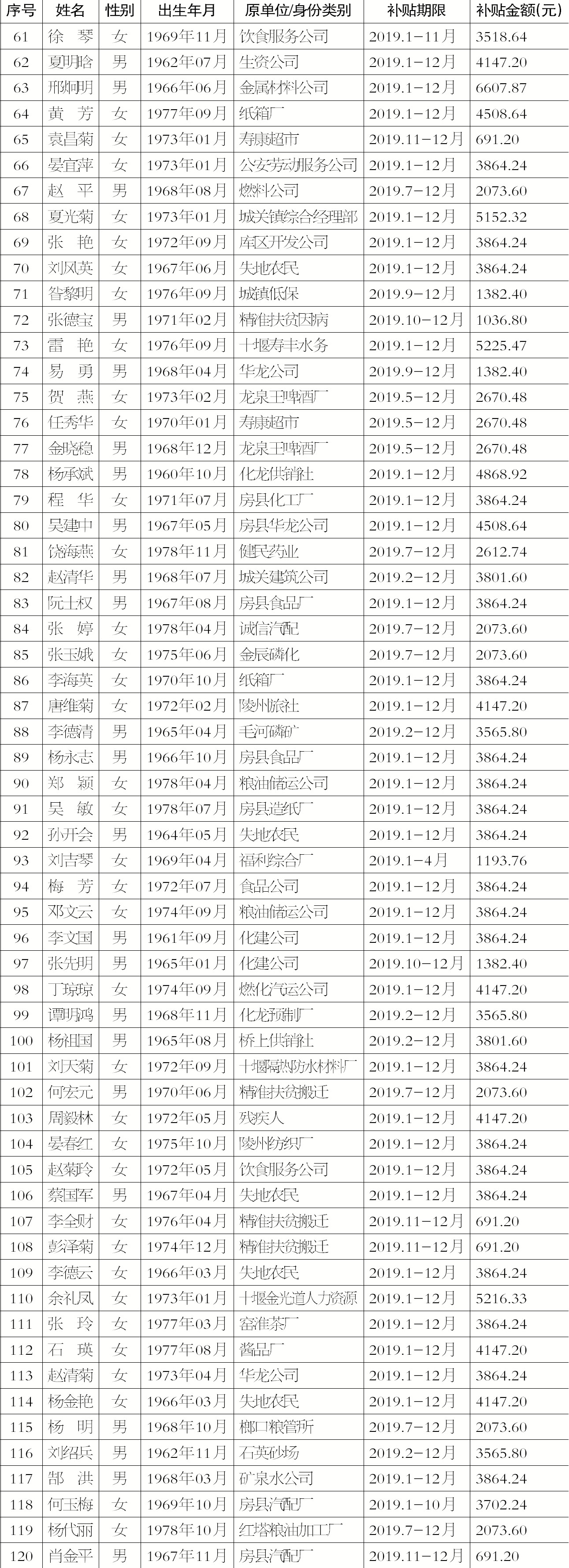 灵活就业困难人员享受社保补贴人员名单(共120人)