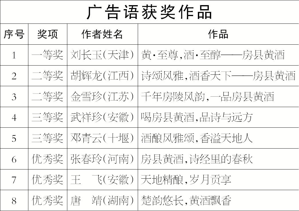 本报讯 (通讯员孙婷婷 施桥员) 近日,由县黄酒产业发展中心和县文联主办的“房县黄酒广告语和logo(形象标识)征集”活动圆满落幕。