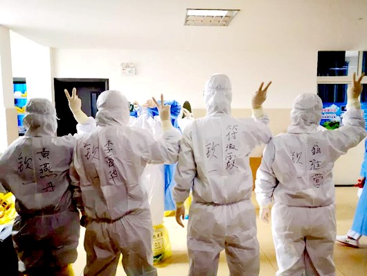到达县医院感染科,在科室雷主任的热情介绍下,符组长也积极的表态,表达了广西驰援湖北的友爱之情、共渡时艰的立场,赢得了全科室的热烈掌声。接下来,我们共同听取了昨天的交接班情况,科室的田护士长就科室目前确诊的32个患者的病情、病因、心理活动状态作了详细的交接。