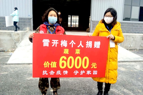 收到善款后,雷开梅又自己出资一部分,从孙家湾购买了2000 斤蔬菜,捐赠给县疫情防控指挥部。