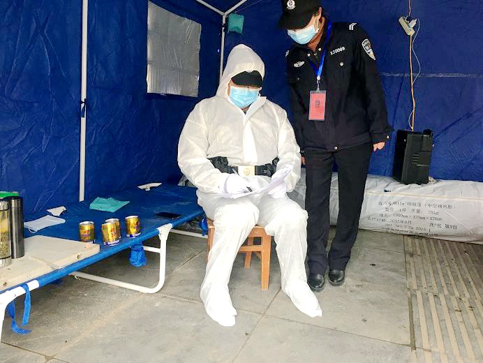 白露社区人员复杂,武汉返乡人员排查、居民出行卡口管控均是疫情防控工作的重难点。回到社区警务室后,王森主动要求参与一线防控工作,带领警务室辅警24小时值守。针对武汉返乡人员排查工作,他主动担当,一个口罩、一件防护衣、一个体温计、两条腿,带领工作人员走遍了辖区的每家每户。有人开玩笑问他:“就剩一年就要退休了,何必还这么辛苦?”他笑着说,我是人民警察,更是老党员,要带头站好最后一班岗,疫情不退,我不退!”