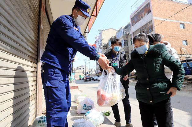 3月5日,县消防救援大队119党员服务队许兴龙把在超市代购的物资送到居民手中。