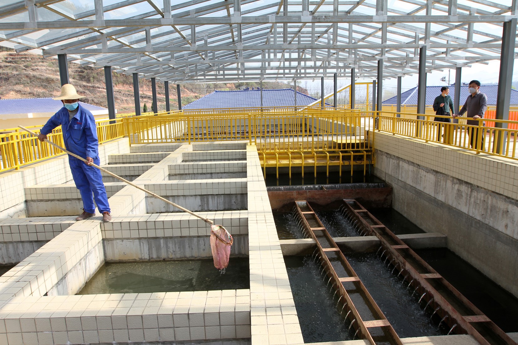 3月20日,城北水厂工人正在清理飘落在制水池水面的杂质。我县一手抓新冠肺炎疫情防控,一手有序复工复产农村集中供水水厂,确保农村饮水安全。目前,全县农村308个集中饮水水厂复工、870座分散饮水工程复产,复工复产率达100%,解决了部门农村人口饮水问题。 (张启龙 摄)