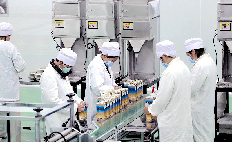 3月21日,在位于东城工业园内的湖北神武绿源农业科技公司生产车间,工人正在包装茶产品。该公司抓好疫情防控和复工复产两大关键环节,3月10日起分步有序恢复生产,截至目前产能已恢复70%以上,日产产品11吨。 (全正 摄)