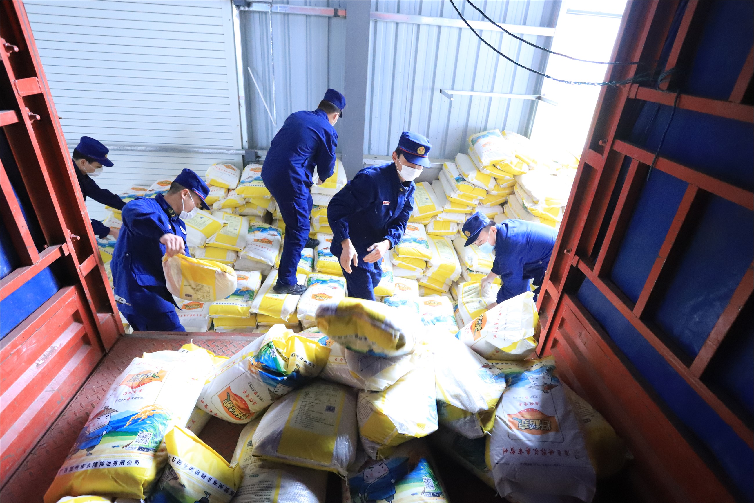 近日,县消防救援大队接到县防疫指挥部紧急工作指令,急需将12吨大米和1500多箱牛奶转运至防疫物资仓库。接到命令后,县消防救援大队立即派出119党员突击队进行转运。经过4个多小时奋战所有物资全部转移完毕。自受理涉疫报警救助以来,县消防救援大队已受理和主动请战开展酒店消杀、物资转运、配送等任务30余起。 (徐源祥 摄)