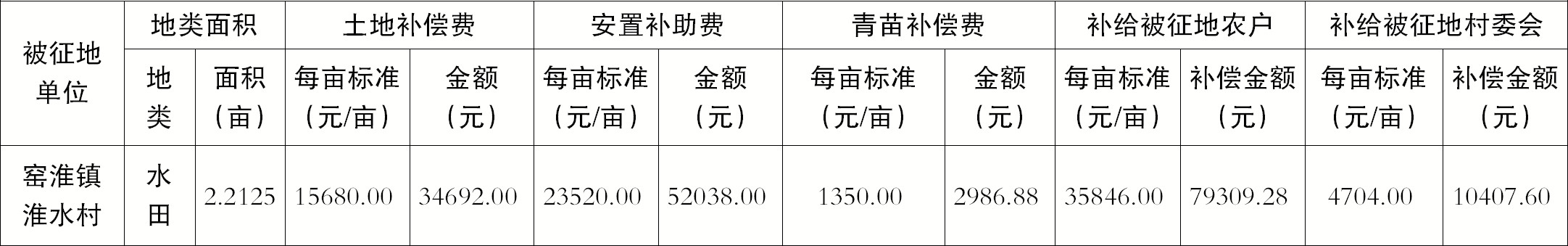 1、征地补偿标准(含土地补偿费、安置补助费):按照《湖北省人民政府关于公布实施湖北省征地区片综合低价标准的通知》(鄂政发〔2019〕22号)规定的房县征地区片综合地价标准,窑淮镇淮水村属Ⅲ类区域,区片综合地价标准为39200.00元/亩。