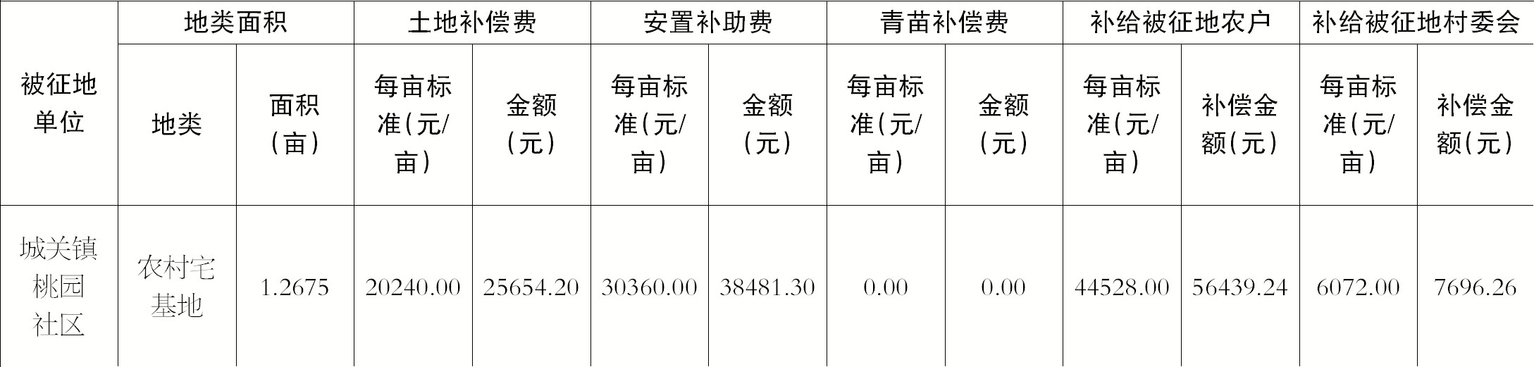 1、征地补偿标准(含土地补偿费、安置补助费):按照《湖北省人民政府关于公布实施湖北省征地区片综合地价标准的通知》(鄂政发〔2019〕22号)规定的房县征地区片综合地价标准,城关镇桃园社区属Ⅰ类区域,区片综合地价标准为50600.00元/亩。