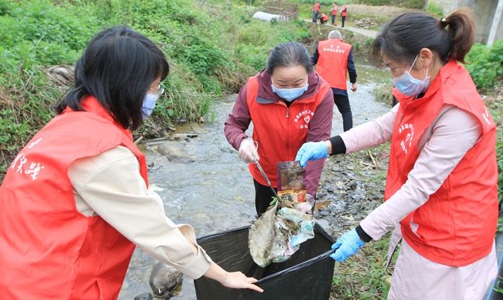 近日,县水利和湖泊系统48名新时代文明实践志愿者在沙沟河土城镇花楼门段捡拾河道漂浮物、清理河边垃圾。此次活动是该局落实全县开展“爱国卫生月活动”的举措之一。 (张启龙 摄)