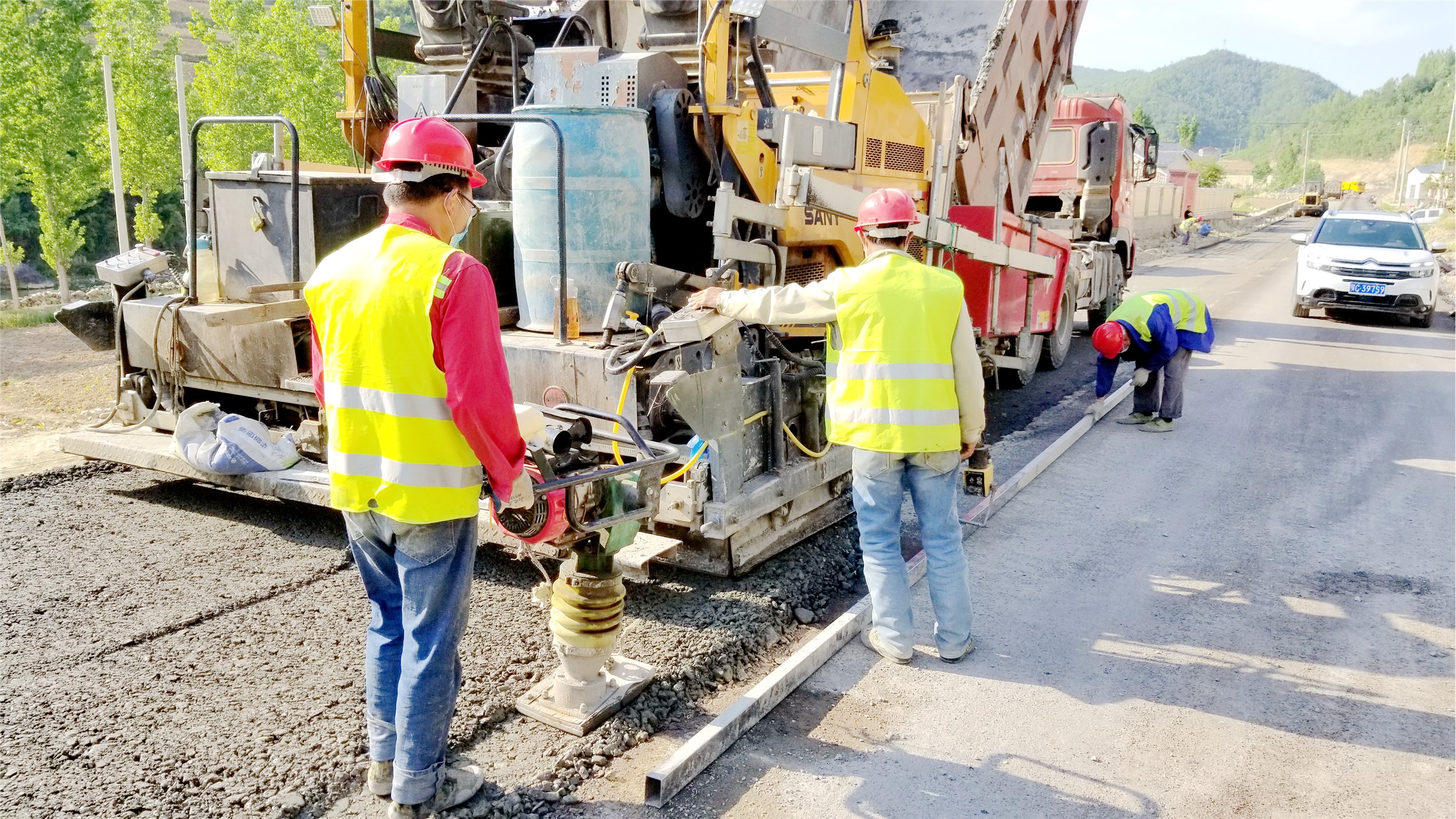 近日,在S477孙家湾至黄杨树公路改扩建工程施工现场,工人们正在大型机械的配合下铺设水泥稳定砂。据了解,S477线公路改扩建工程起点位于白鹤镇孙家湾村,终点黄杨树村,路线全长18.354公里,项目按二级公路标准建设,路基宽度8.5米,总投资约1.9亿元。目前路基已全部完成,路面稳定层铺设10公里,油路面铺设5公里,预计5月中旬主体工程全部竣工。 (刘臣 王东 摄)