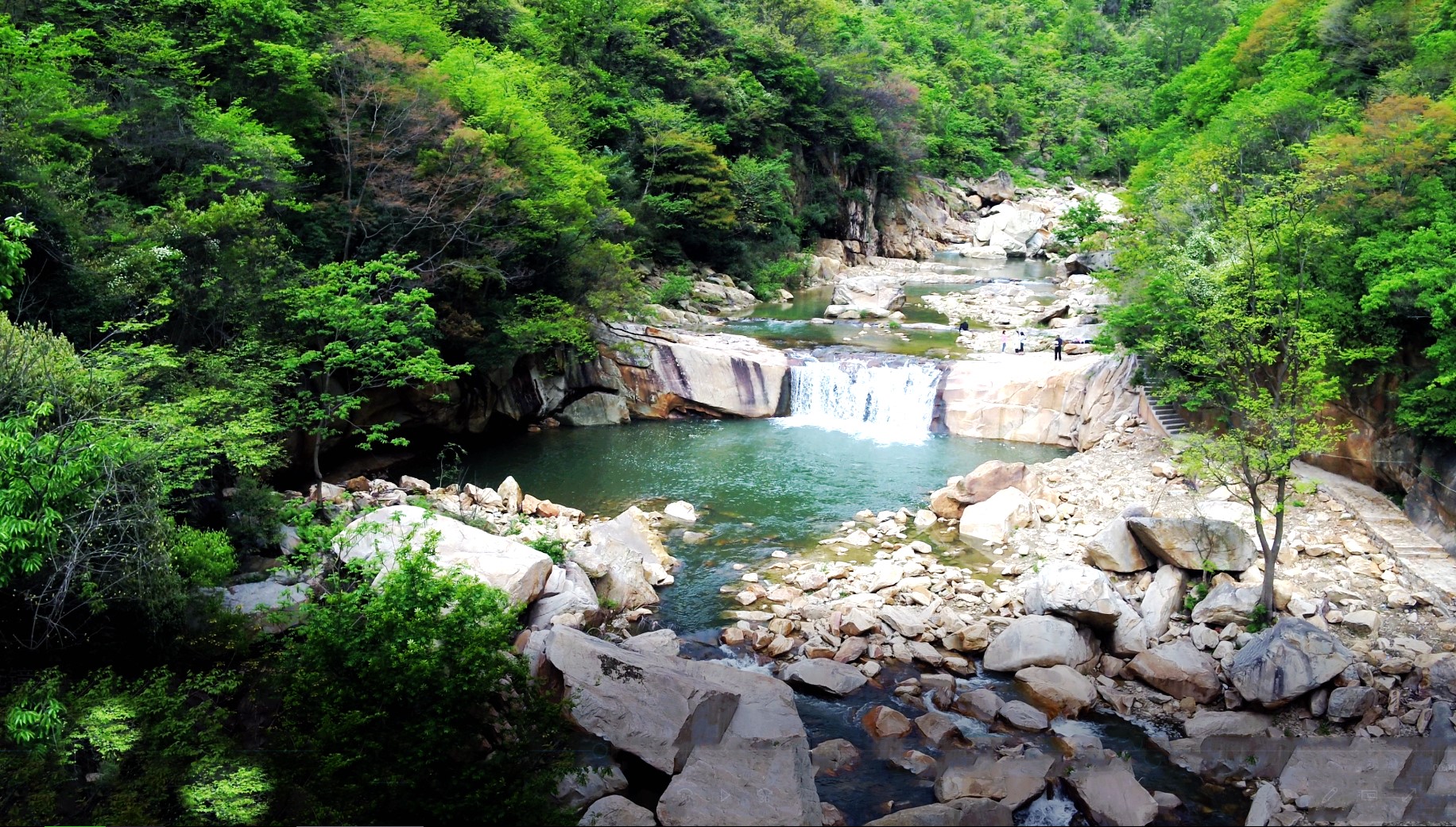 位于青峰镇北部的阳坪村境内,有一道美丽的风景——龙潭坎。景区内呈东西方向有一座小山酷似一条巨龙横卧于河中。巨龙由龙头、龙眼、龙背、龙尾组成,龙头向西,昂首挺立,双目圆睁,环顾四周。巨龙上下共有三潭,头潭临龙口,似瀑非瀑,响声沉闷,潭水久久回旋而下。二潭瀑布最为壮观,河水迂回盘旋于山坎之上形成一道半月形的河湾,缠山绕石从山坎上飞泻直下流入二潭。潭水清澈碧绿,泛起阵阵涟漪,故称“龙潭坎”。