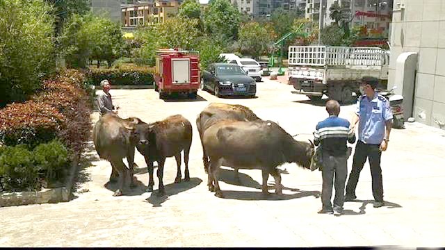 本报讯 (特约记者魏世银) 6月1日凌晨2点多,县公安局城关派出所民警巡逻时,在209国道城关镇北门河大桥处发现5头水牛正在路上“闲逛”,经过8个多小时的访问查找,当日上午11时许,焦急的牛主来到派出所将走失的水牛接了回去。