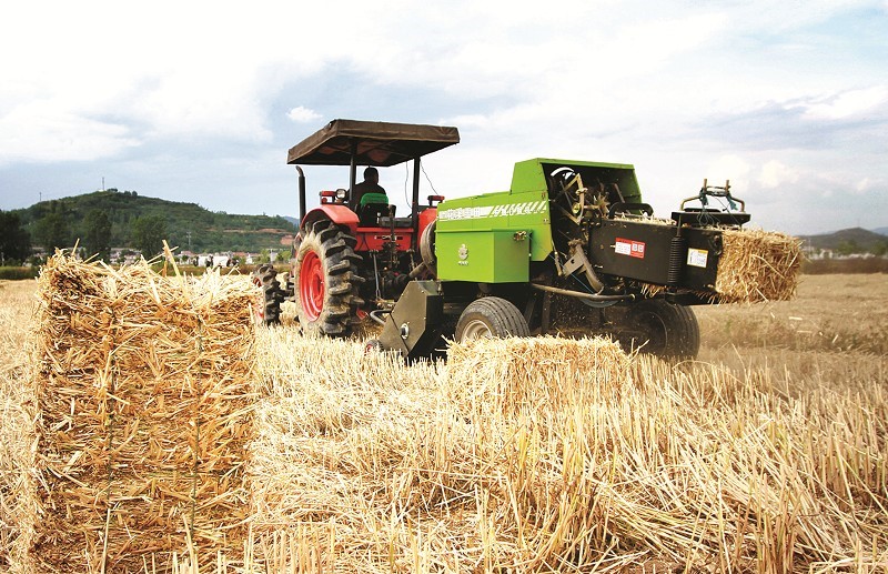 近日,在军店镇上茅坪村,捡拾打捆机将收割后的秸秆送到指定地点粉碎成饲料。目前,夏粮夏油进入全面收获期,为了解决农户废弃秸秆焚烧造成的污染问题,县农机服务中心将农机农艺相融合,把推进小麦机收、秸秆打包、农业废弃物综合利用结合起来,既提高了农作物收获效率,为种植户增加收入,又解决了秸秆露天焚烧带来的环境污染问题。(张启龙 邢玉皎 孙军 摄)