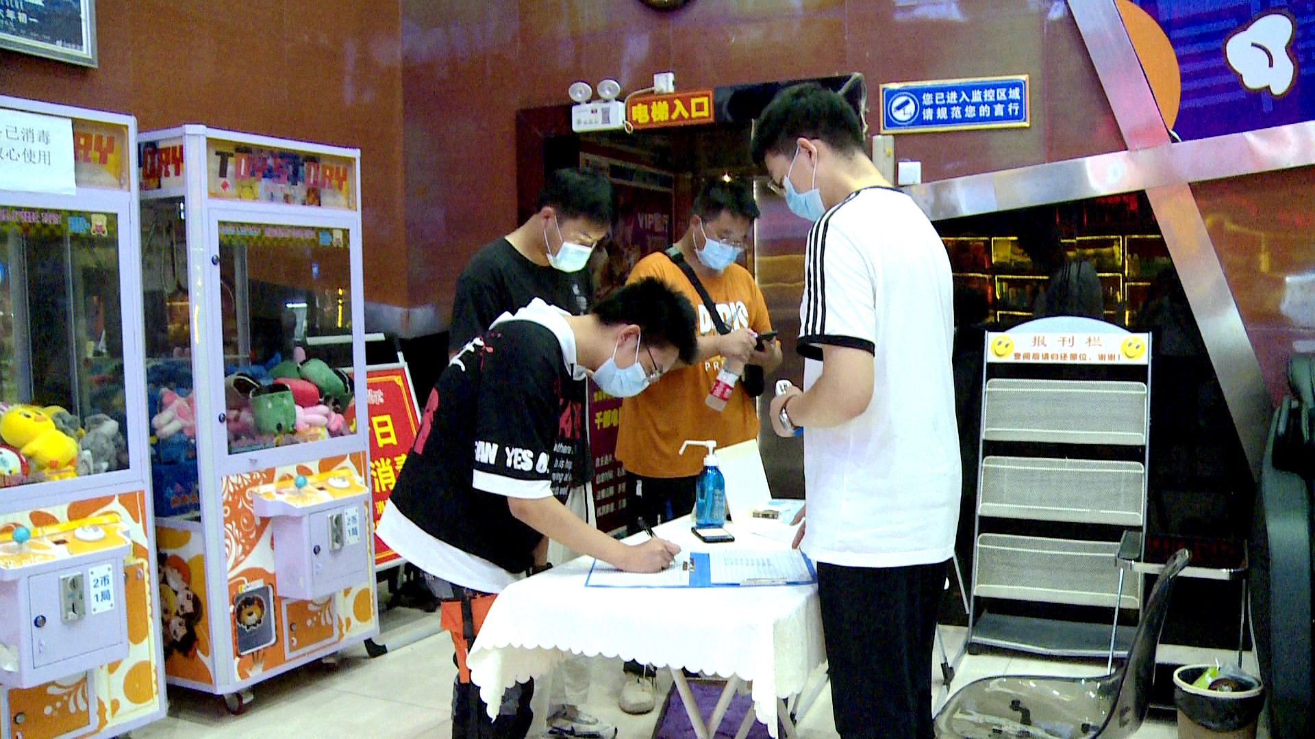 近日,记者走访城区多家影院,看到各影院现场秩序井然,观影群众在影院工作人员的引导下,登记信息,佩戴口罩,测量体温,在做好疫情防控的同时享受到良好的观影体验。在影院前台、休息区、检票口、卫生间都放有消毒液,并定时对公共区域定时进行擦拭和喷雾消毒。 (宋钱 摄)