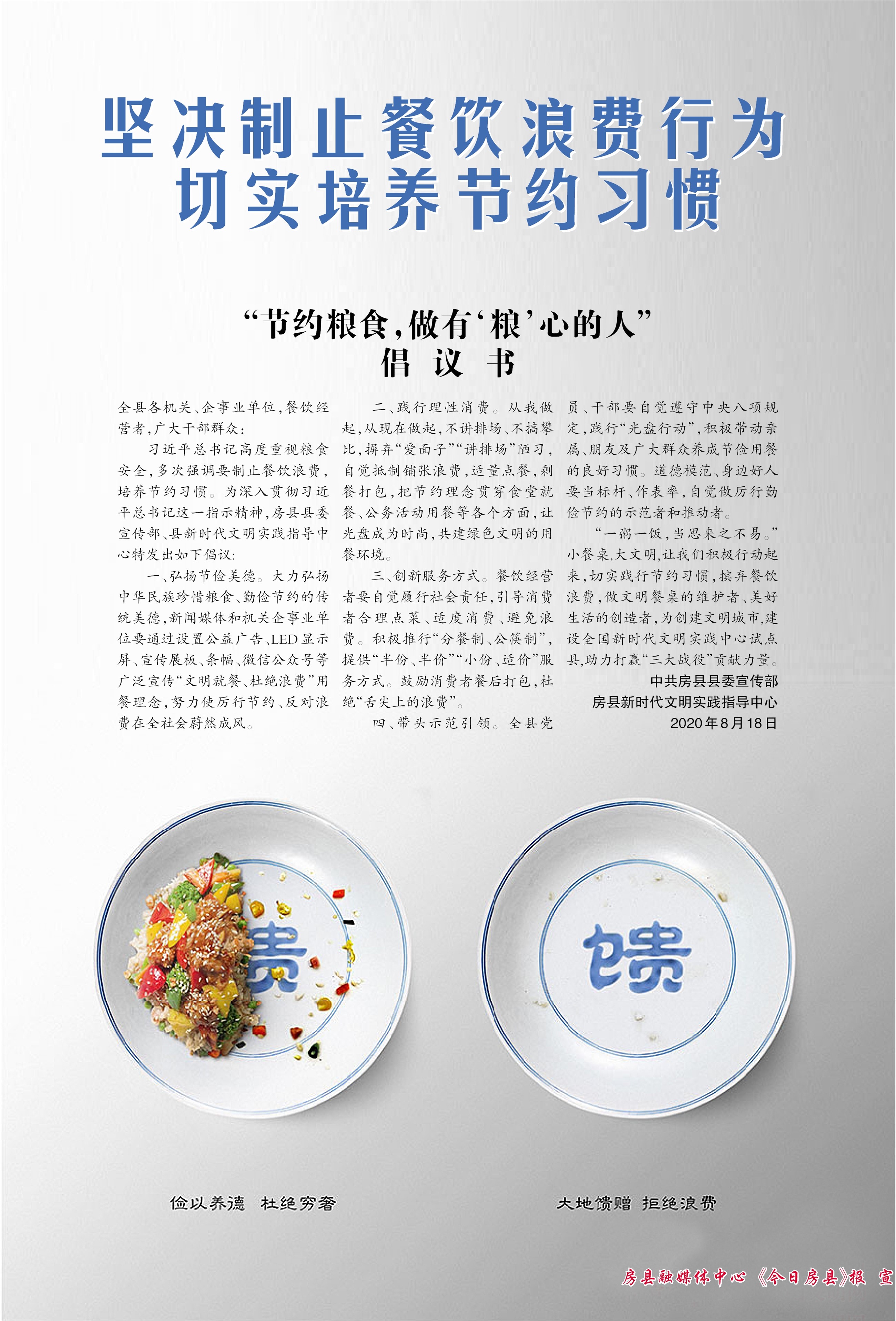 坚决制止餐饮浪费行为 切实培养节约习惯