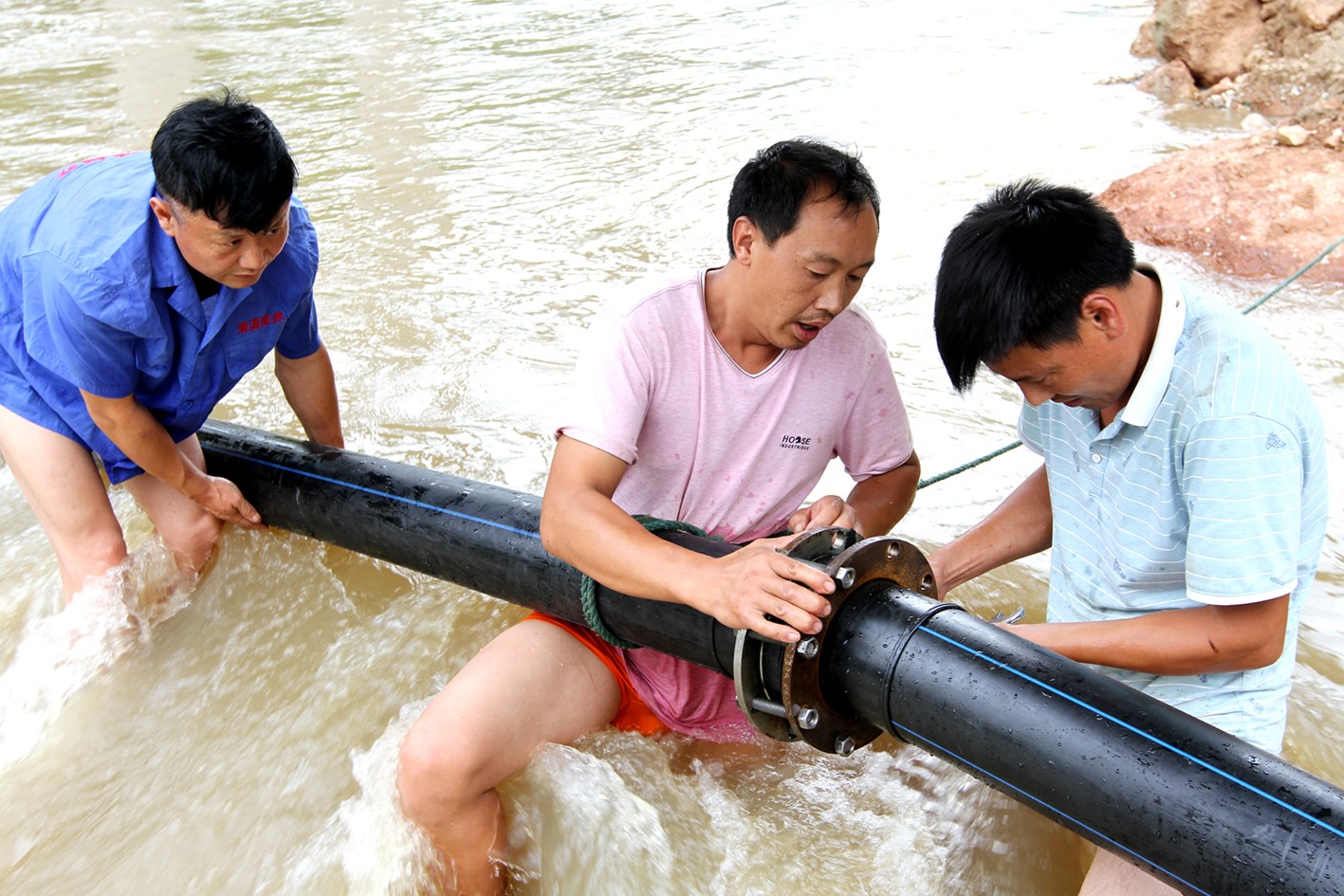 8月22日,县水利志愿者突击队员在沙沟河朱湾村段抢修水毁饮水管道,经过8个多小时的抢通,当天下午红塔镇朱湾、况营、谢湾等5个村饮水恢复正常。受强降雨影响,近日我县境内河库洪水暴涨,一些农村饮水安全主干支管道遭受洪灾肆虐。灾情面前,县水利和湖泊局、饮水办、农村供水管理局和清溪维养有限公司水利志愿者突击队火速奔赴灾区维修饮水设施,确保当地农民生活生产用水。 (张启龙 摄)