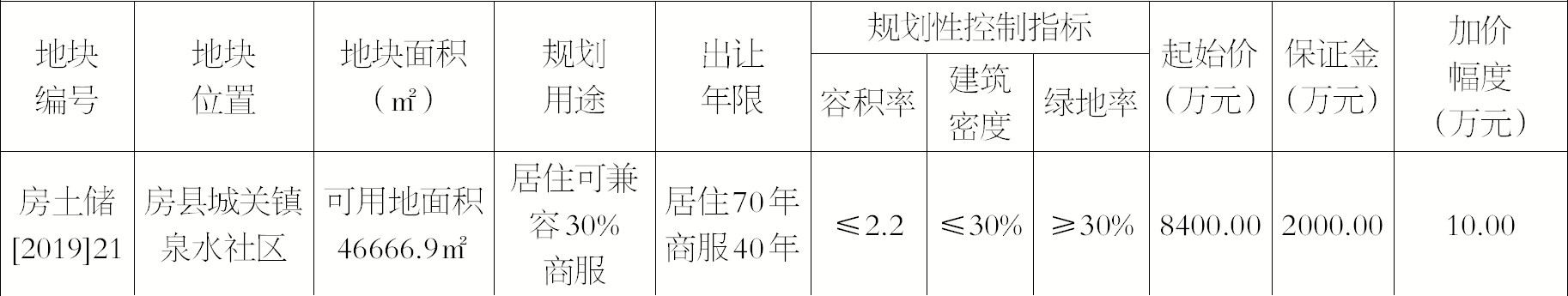 2、本次出让的宗地以现状条件出让,房土储〔2019〕21号宗地由房县城关镇人民政府负责交地。