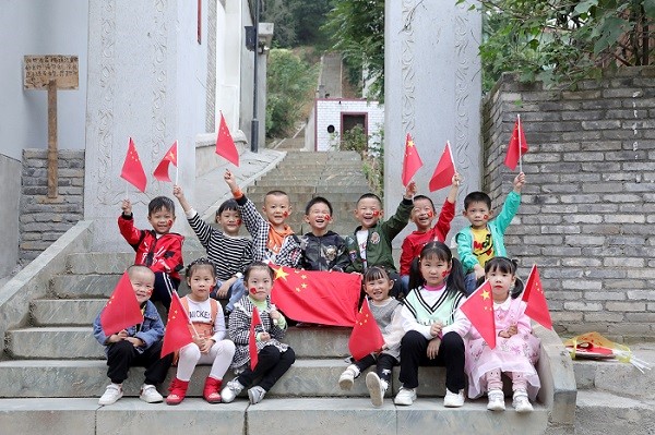 图为:近日,军店镇中心幼儿园组织幼儿们来到房州古镇,听老师讲解老街的由来,并和国旗合影,激发幼儿们爱家乡、爱祖国的热情。连日来,该校开展向国旗敬礼、同唱《国旗国旗真美丽》活动,引导幼儿学画国旗,表达对祖国深深的热爱。
