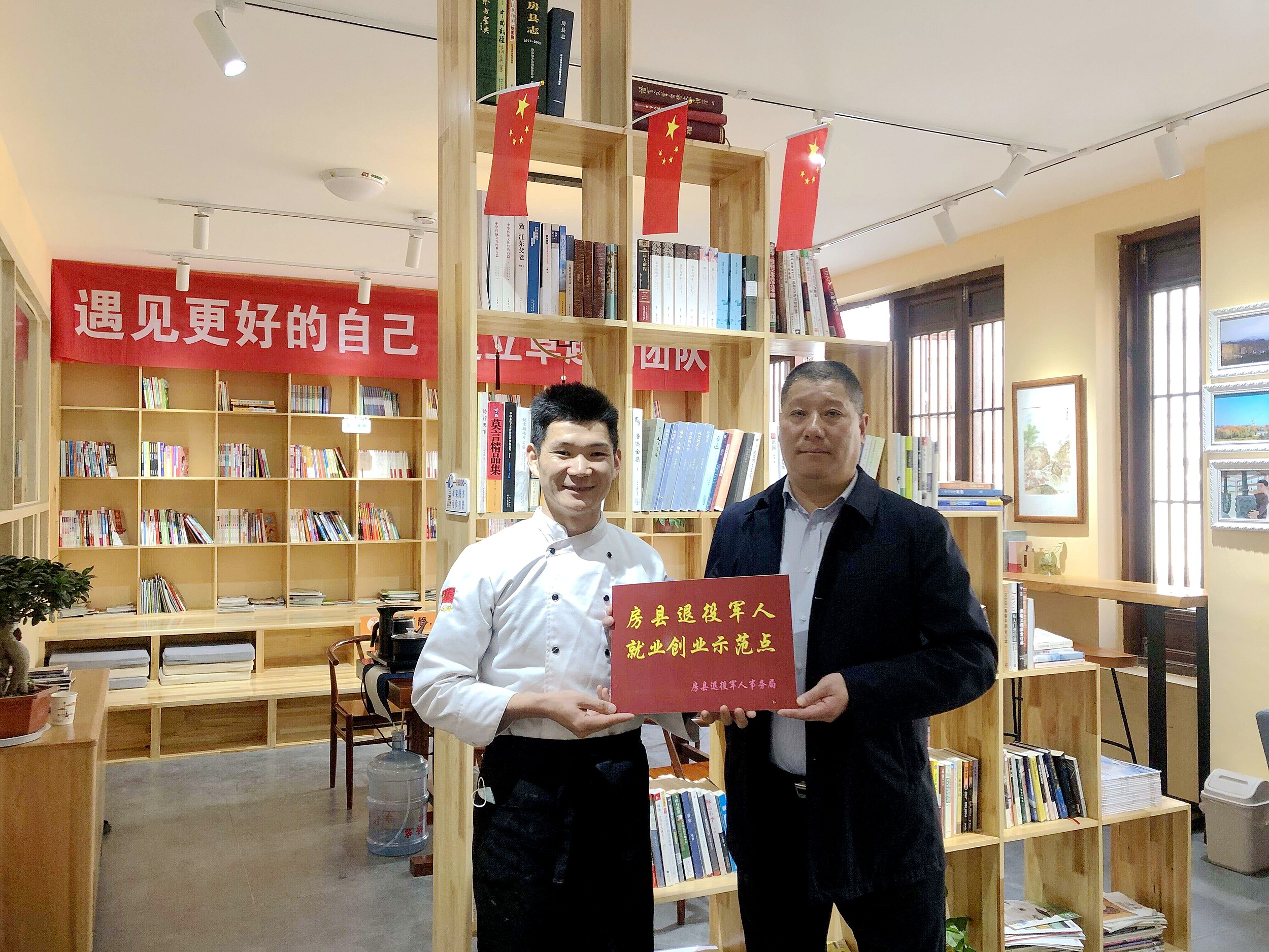 近日,县退役军人事务局授予秉文书店“退役军人就业创业示范点”称号,这是我县挂牌的首个退役军人就业创业示范点。该局负责人向店主何近近询问书店目前运行情况;了解他在创业过程中的问题和困难;鼓励他继续发扬军人的优良传统,把握和利用好就业创业平台,不断提升就业技能。建议他充分发挥退役军人的优势,在书店加入军旅元素,吸引更多退役军人加入到创业就业当中来。(赵蕾 摄)