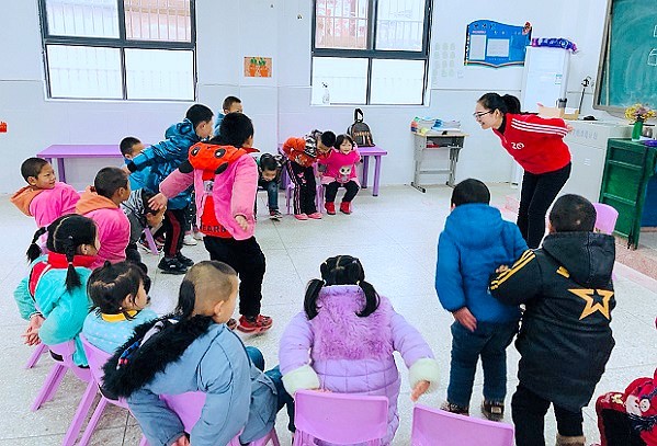近日,军店镇中心幼儿园教师走进该镇上茅坪小学附属幼儿园给孩子们上示范课。在为期一周的结对帮扶活动中,中心幼儿园教师根据各村级附属园的园情,通过示范课、问题探讨、互动点评等方式,把好的游戏课程和本土化游戏带进附属园,逐步形成优质培训资源,缩小办园水平的差异。(杨丽 散静娇 摄)
