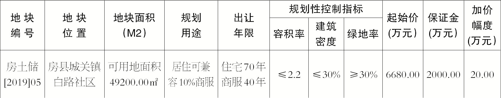 2、本次出让的宗地以现状条件出让,房土储〔2019〕05号宗地由房县城关镇人民政府负责交地。
