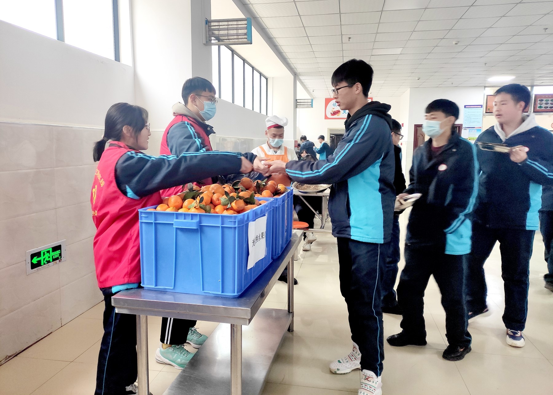 连日来,在县二中食堂,志愿者们为学校参与“光盘”活动的学生发放水果。该校通过主题班会发起“光盘”倡议,在校园广播中开设“光盘”特别节目,在宣传橱窗中张贴宣传海报,在食堂内悬挂“厉行节约反对浪费 节约粮食从每一餐做起”横幅,志愿者们在食堂的进出口进行“光盘”行动劝导宣传等系列活动,让更多的学生参与到活动中来。 (钱丽 摄)