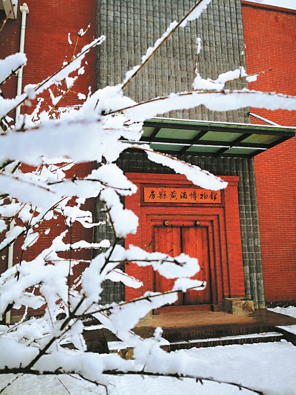 冬天,房县黄酒博物馆被白雪包裹,美如画。 花田酒溪景区供图
