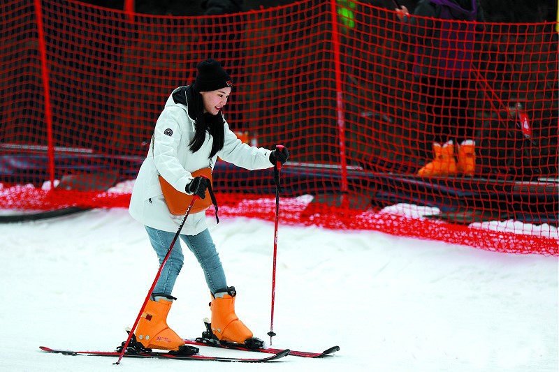 武当国际滑雪场里 , 游客滑雪欢乐多 。 姜益民 摄