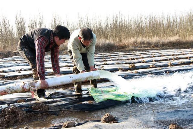 近日,军店镇月明村农民在羊肚菌基地抗旱浇水。我县补齐小水利工程短板,加固除险77座灌区水源工程,配套微喷、滴灌节水设施,服务耳菇、蔬菜产业发展,为农民搭建增收平台。目前,全县大力发展滴灌微喷蔬菜、耳菇产业,促进了10万农民增收致富。(张启龙 刘凤 摄)
