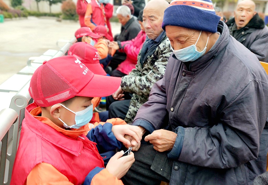近日,军店小学9名教师志愿者和16名少先队员走进该镇福利院,为老人们带来精彩的文艺汇演,帮老人扫地、拖地、整理床铺,给老人捶背、梳头、剪指甲、聊天等,给孤寡老人带去欢乐,让他们感受到社会的温暖。 (郭品丽 摄)