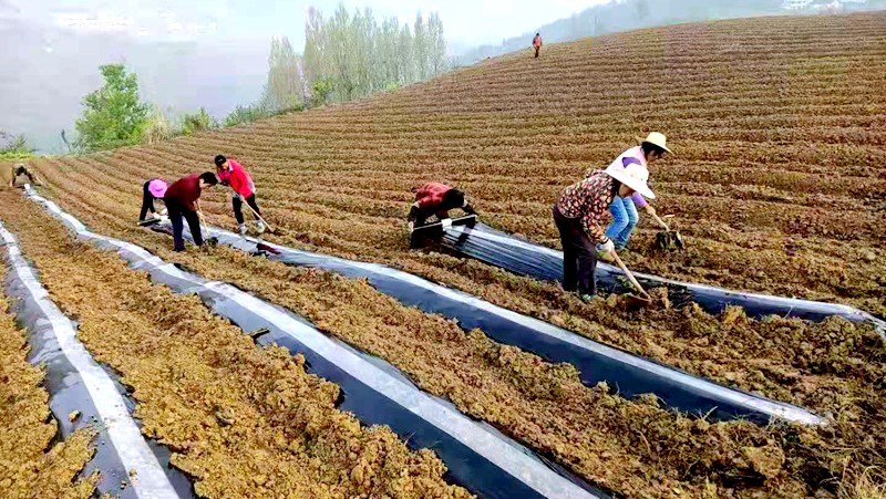 近日,沙河乡五塘村的烟地里,几台旋耕机正在起垄、施肥,农户们正在加紧合力覆膜,现场一派火热的劳动景象。今年以来,该乡精细挑选优势地块发展烟叶2100余亩。截止目前,已完成全部任务的60%以上,预计4月下旬即可全部起垄完毕。(雷钰琪 摄)