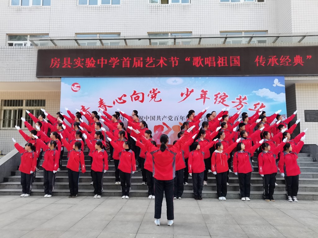为庆祝中国共产党百年华诞,培养学生爱国爱党的伟大情怀。日前,县实验中学举行首届艺术节红歌合唱比赛,激情唱响红色经典激励青春奋进的号角。下一步,该校还将举办主题舞蹈比赛、武当武术展演、红色运动会等一系列活动,推动党史学习教育在校园进一步走深走实。 (杨莉咏 摄)