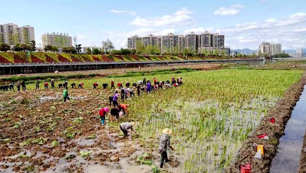 连日来,记者在县行政中心门前的西河第一级橡皮坝内看到,园林工人正在河道内栽植菖蒲幼苗,绿化净化河道。截至“五一”前,完成栽植面积大约350亩。今年来,县住建部门坚持建管并重推进城乡建设,提升城市竞争力和宜居度。(代世旭 杜斌 摄)