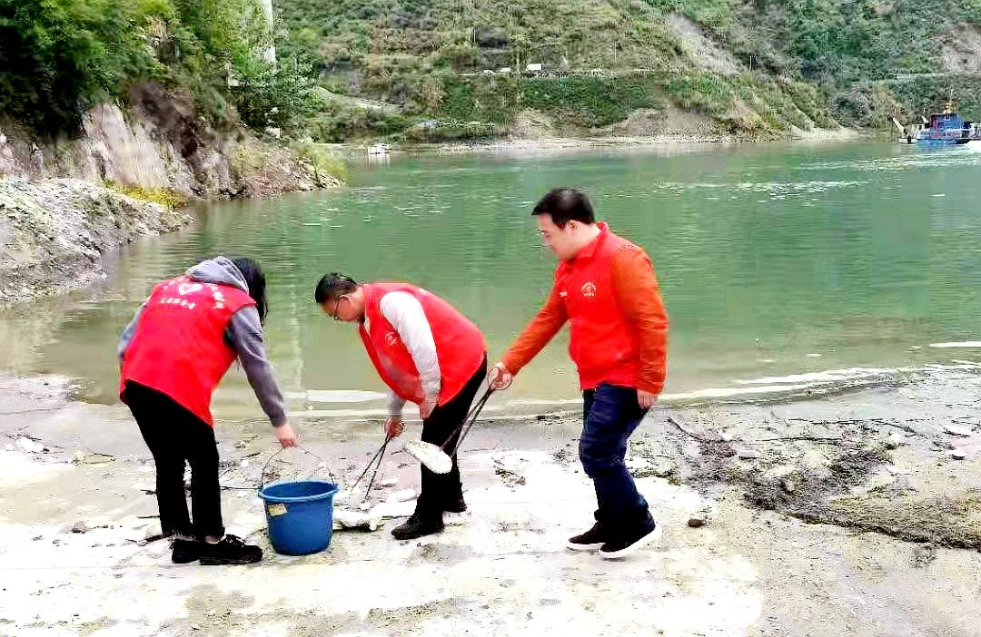 近日,姚坪财政所结合党史学习教育,组织新时代文明实践党员小分队在黄坪码头开展“保护水源地 党员在行动”主题志愿者服务活动,志愿者们对堵河水源地环境清理,并向群众讲解水源保护知识,提高群众对饮用水源保护重要性的认识。 (李戈 摄)