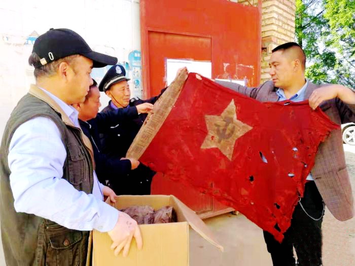 据夏中清介绍,2004年在翻修老房子挖地基时发现一个牛皮纸包,里面装着这面红色军旗。