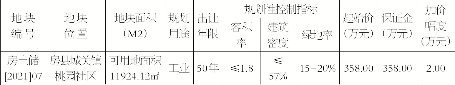 2、本次出让的宗地以现状条件出让,房土储〔2021〕07号宗地由房县城关镇人民政府负责交地。