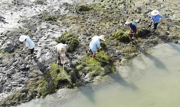近日,“民间河湖长”在大河城区段清理河床。大河、马栏河贯穿县城中心段,我县修建了8座人工湖,清理河道内枯萎的水生植物、湖面漂浮垃圾是一项常态化工作。 我县充分调动各方积极性,“ 民间河湖长”积极参与管护。 (张启龙 刘凤 摄)