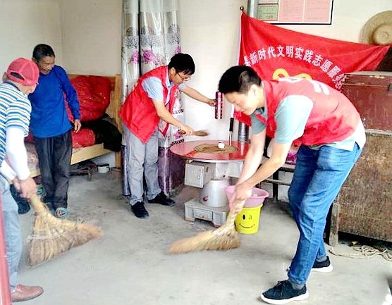 近日,姚坪乡新时代文明实践志愿服务支队来到下磨山小区五保户刘国强家中帮老人剪指甲、梳头、清洗衣物、晾晒被褥、打扫室内外卫生,为老人送上了粮、油、糖、卫生纸、餐巾纸、牛奶等生活用品,关心老人的健康状况和生活状况,让老人感受到党和社会的关爱。 (昝举 摄)