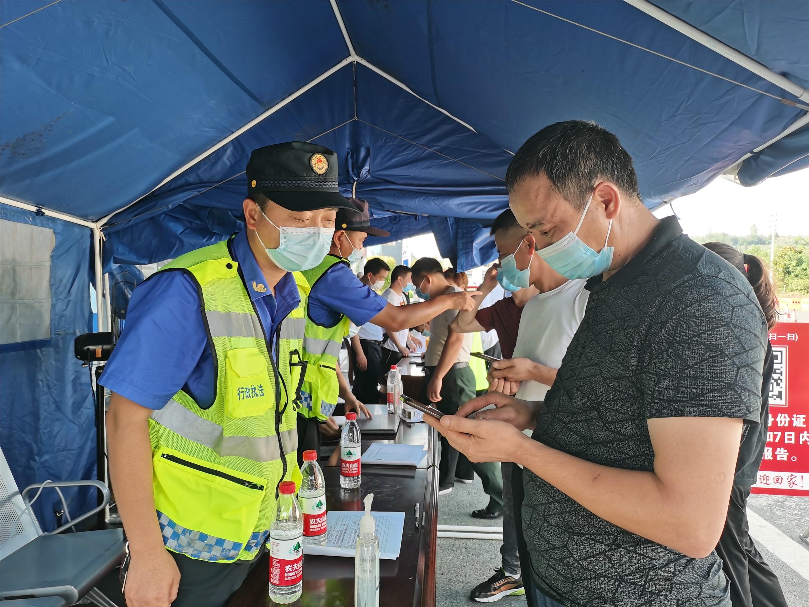 在城区高速公路出口,由公安交警、交通、卫生、市场监管、城管执法局、退役军人事务局、城关镇、志愿者组成的疫情防控专班,在高温和烈日下分工配合,对所有上下高速公路的车辆实行扫码登记,将外地返房人员将信息反馈给各乡镇,由各乡镇对人员进行进一步跟踪管理和核酸检测,形成闭环管理;对客运车坚持每人必查,对货运车坚持人和货物必查;如果发现中高风险地区的人员,将第一时间登记上报,并按要求进行隔离。