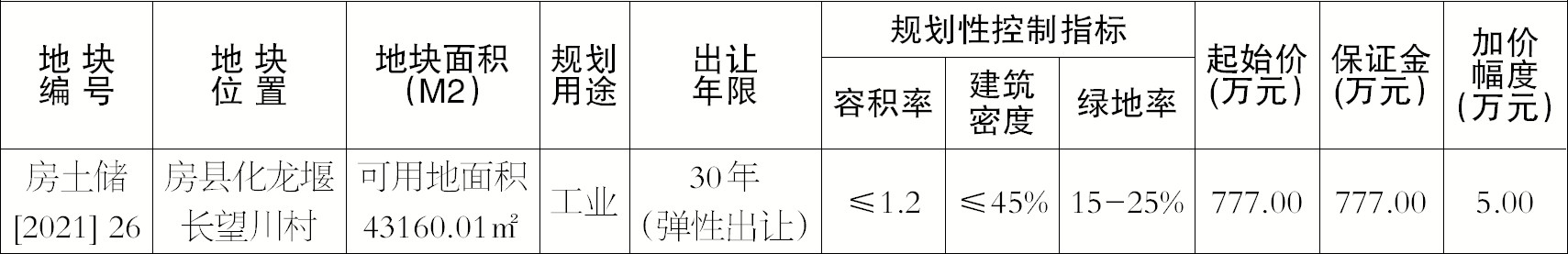 2、本次出让的宗地以现状条件出让,房土储〔2021〕26号地由房县化龙堰镇人民政府负责交地。