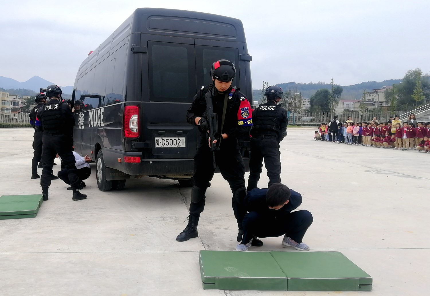 近日,房县思源实验学校联合县公安局特警(反恐)大队和红塔派出所联合开展“反恐防暴”知识培训和模拟演练活动。活动现场播放反恐防暴工作宣传片,让全体师生掌握基本的安全常识,具备躲避危险和自救的能力。(杨红霞 罗兴超 摄)