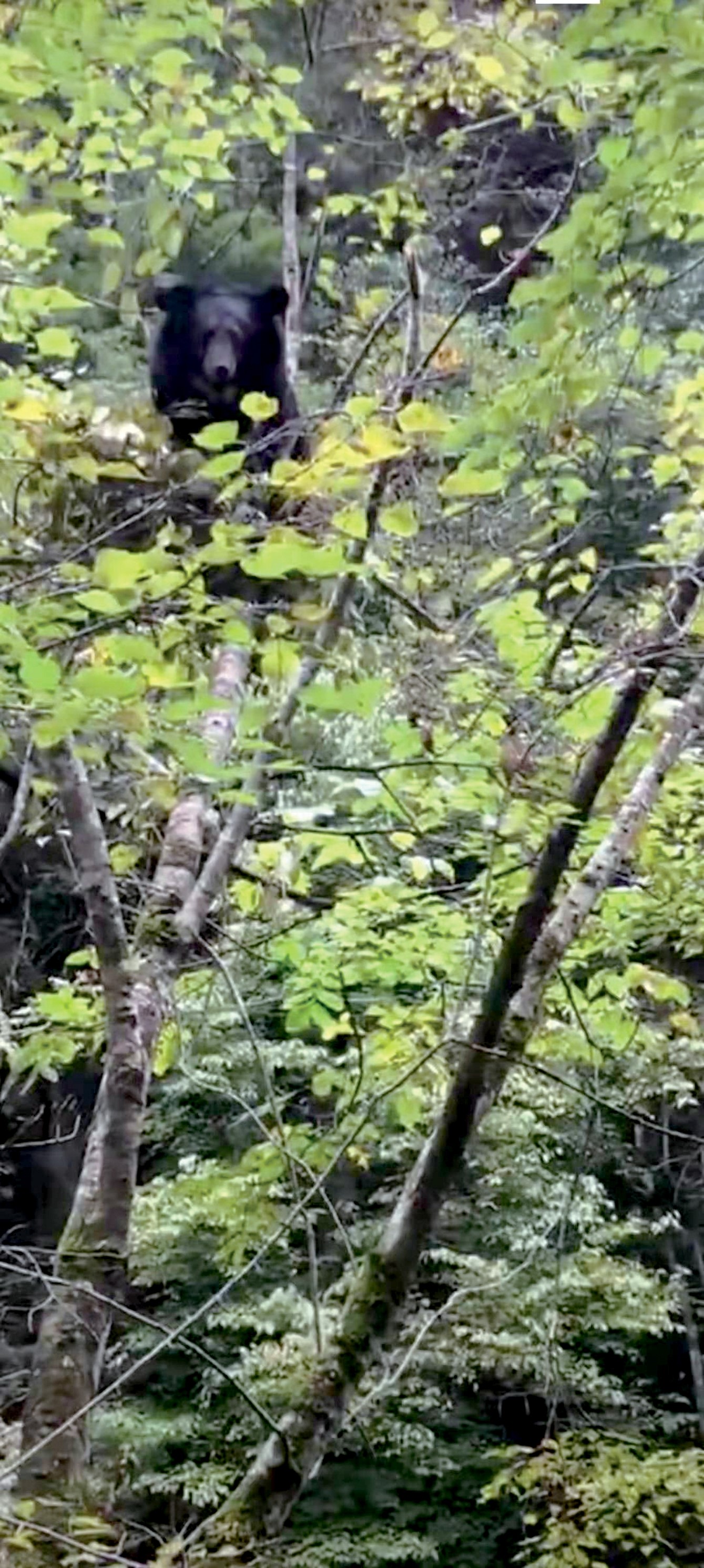 本报讯 (十堰晚报记者杨建波) 近日,苏先生一行在门古寺镇代东河林场黑水洞电站附近山林游玩时,偶遇一头目测在200公斤以上的成年黑熊。据悉,在十堰市发现如此大的成年黑熊尚属首次。