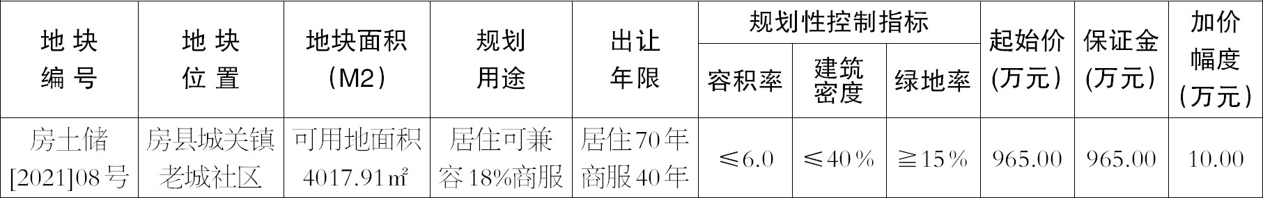 2、本次出让的宗地以现状条件出让,该宗地由房县老城片区棚户区改造指挥部负责交地。
